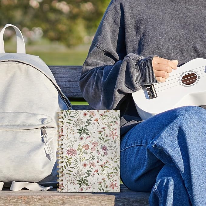 Floral Journal Notebooks, Girly Aesthetic College Ruled Notebooks for Note Taking, Cottagecore Botanical Floral Journal Journaling, Spiral Notebook 5.5x8.3