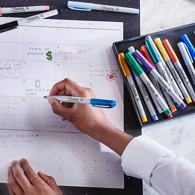 - Sharpie permanent markers with ink that marks on paper, plastic, metal, and most other surfaces