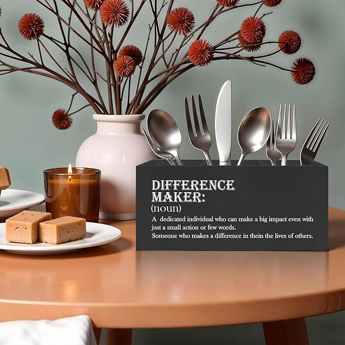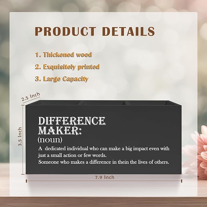 Difference Maker Gift Pencil Pen Holder for Desk, Appreciation Thank You Gifts for Coworkers Employees Boss Teacher Mentor Wooden Pencil Holder Organizer for Home Office Desk Accessories