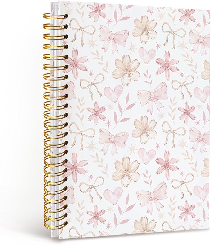 MOFUYU Wildflower Spiral Notebook for Girls,Journals for Women,Coquette Pink Bow Floral Journal A5,Spiral Notepad for Daily Writing,Pretty Gift for Teen Girls or Students,Notebook Gift for Women