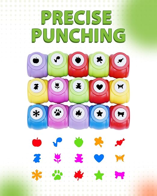 - Mini & Portable Size: Compact design (1.25” x 1.1” x 1”) makes it a convenient shape hole punch to carry anywhere. Shape cutters for paper is deal for classrooms, crafting corners, family time or travel. Specially designed for kids (ages 5+) and adults