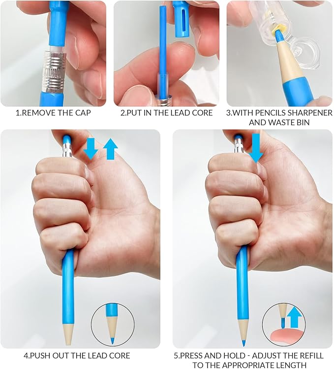 - Notice: If a broken lead gets stuck inside, simply insert a full-length lead through the back cap to push the broken piece down and clear the barrel. A quick and easy fix to keep your creative flow uninterrupted