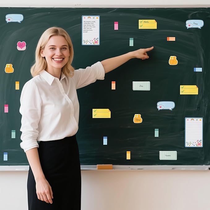 - Material: The sticky note is made of paper material, it is easy to write, the color is long-lasting and it is good adhesion. It can be used many times and will not leave glue after tearing off.
