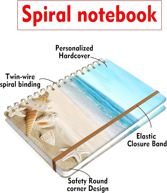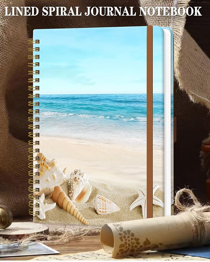 Spiral Journal Notebook for Women, Hardcover A5 College Ruled Notebook, 60 Sheet, Thick Paper, Cute Lined Journal for School, Office & Work, 6 x 8.4 in(Beach)