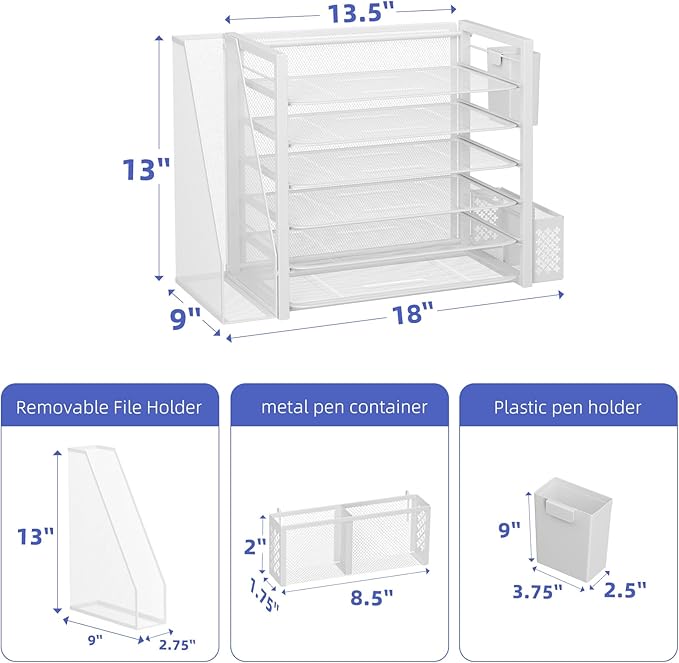- Large Capacity: This desktop organizer has 6 shelves, a vertical file organizer and 2 removable pen holders, all with plenty of storage space for a neat and organized desktop