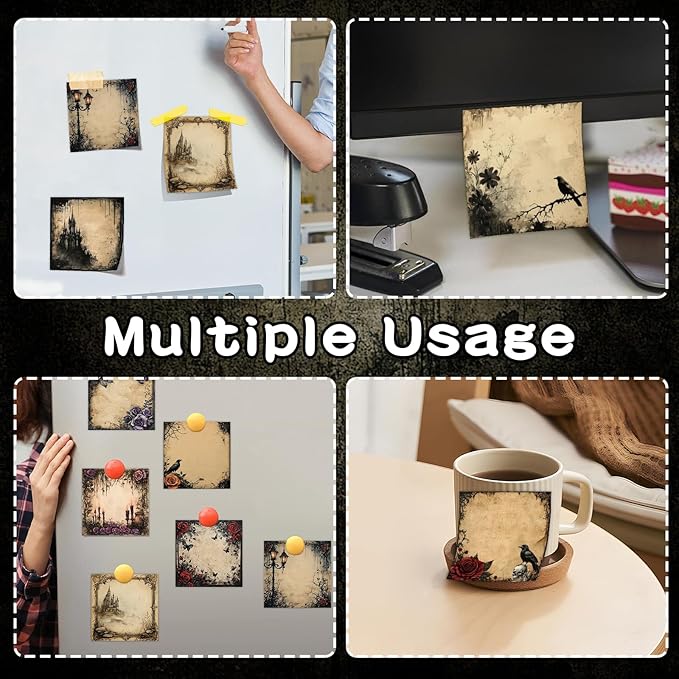 - Excellent Adhesive:This gothic sticky notes is made of high-quality self-adhesive material, with strong stickiness and easy to use. Gothic sticky notes can be firmly attached to notebooks, computers, tables and other items, and will not leave any traces after being torn off