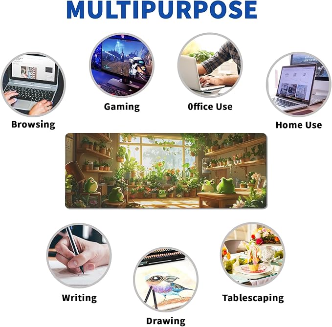 - ♥[Large and Perfect Size]:The extended Cute Frogs Green desk pad measures 31.5x11.8x0.12 inches that covers most of the desk.The desk pad is large enough to have a mouse, gaming keyboard, and other desk items while maintaining protecting your desk all the time.You can freely move your mouse without any interruption and don't have to continually adjust the mat as you do with traditional mousepads.