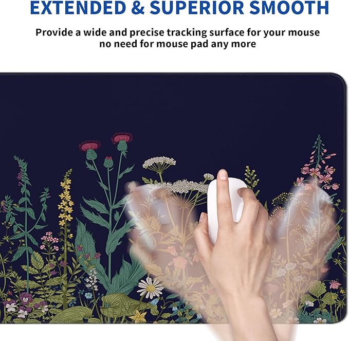 - ♥[Large and Perfect Size]:The extended Wildflower desk pad measures 31.5x11.8x0.12 inches that covers most of the desk.The desk pad is large enough to have a mouse, gaming keyboard, and other desk items while maintaining protecting your desk all the time.You can freely move your mouse without any interruption and don't have to continually adjust the mat as you do with traditional mousepads.