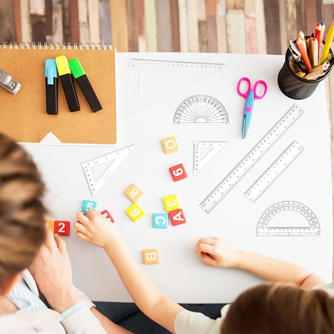 - High-Visibility Transparent Design - Geometry math transparent ruler is made of durable PVC with black-on-clear markings. These rulers provide exceptional clarity for precise measurements while allowing full visibility of underlying text/diagrams, reducing eye strain during extended use.