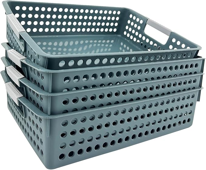 - 【Rational design】each basket is designed with 2 non-slip handles,hollowed out and breathable,Is a very convenient storage tool, widely used in classroom, office, kitchen, bedroom storage.When it is used in the classroom, it can store toys, picture books, bottles, markers, crayons, building blocks, etc.