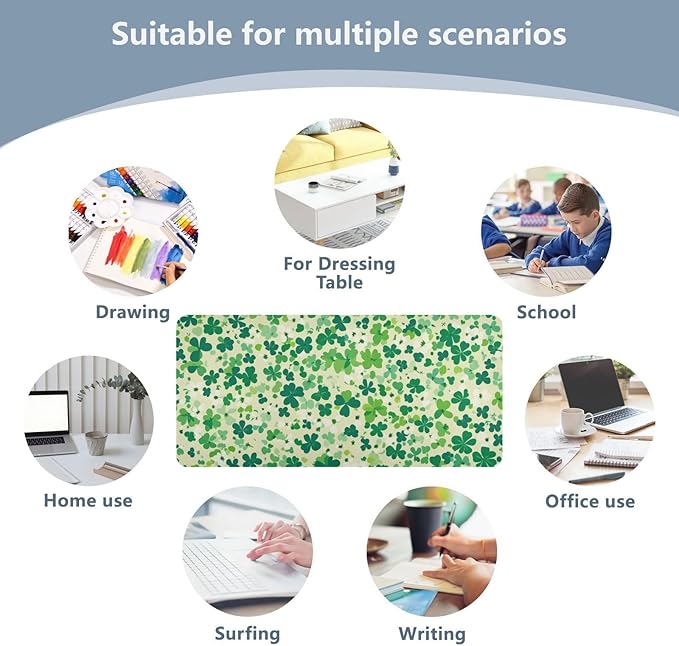 Mouse Pad Desk Mat Leather Desk Pad Large Gaming Desk Cover Protector Mat for Keyboard Computer Laptop Office Waterproof 47.2 x 23.6 Inch Saint Patricks Green Clovers