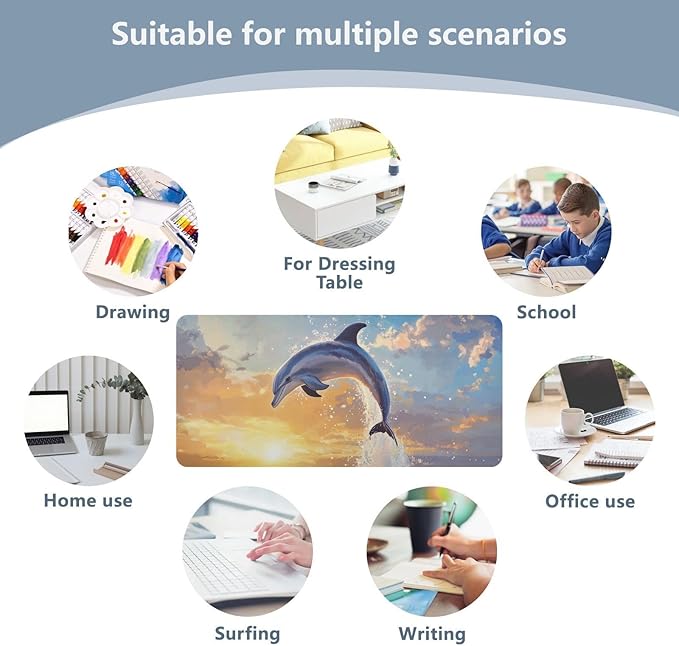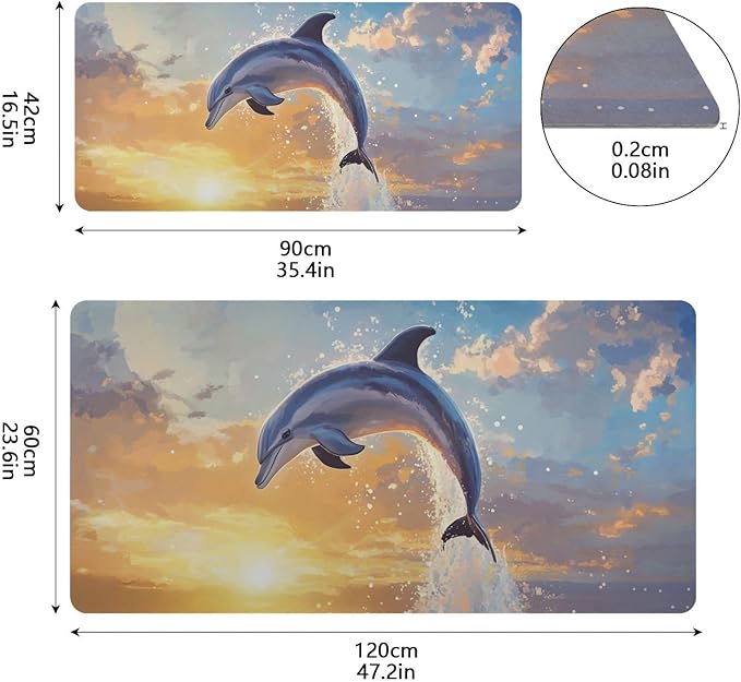 Mouse Pad Desk Mat Leather Desk Pad Large Gaming Desk Cover Protector Mat for Keyboard Computer Laptop Office Waterproof 35.4 x 16.5 Inch Dolphin Jumping Sunset Blue