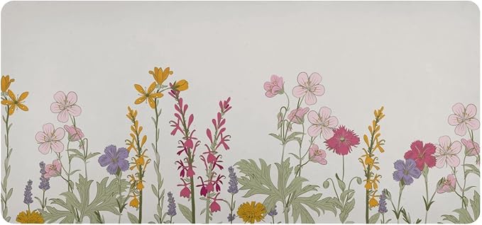 Mouse Pad Desk Mat Leather Desk Pad Large Gaming Desk Cover Protector Mat for Keyboard Computer Laptop Office Waterproof 35.4 x 16.5 Inch Simple Flowers Beige