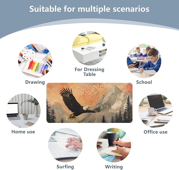 Mouse Pad Desk Mat Leather Desk Pad Large Gaming Desk Cover Protector Mat for Keyboard Computer Laptop Office Waterproof 47.2 x 23.6 Inch Bald Eagle Roses Mointains Orange