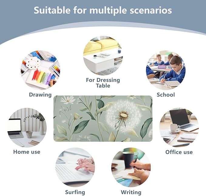 Mouse Pad Desk Mat Leather Desk Pad Large Gaming Desk Cover Protector Mat for Keyboard Computer Laptop Office Waterproof 35.4 x 16.5 Inch Sage Green Dandelion