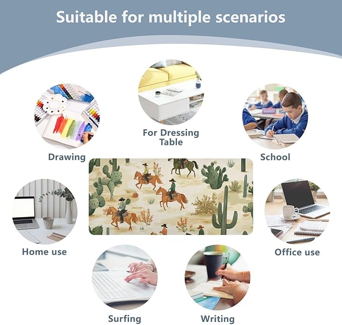 Mouse Pad Desk Mat Leather Desk Pad Large Gaming Desk Cover Protector Mat for Keyboard Computer Laptop Office Waterproof 47.2 x 23.6 Inch Cute Cacti Desert Cowboys Horses
