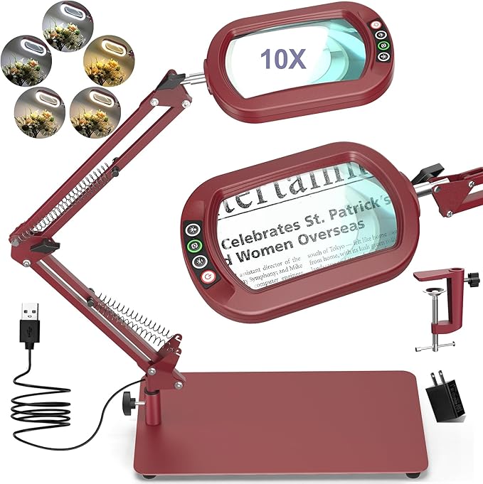 - 10X Rectangle Magnifying Lamp: Dive into your close work with clarity absolute clarity using our magnifying glass's real glass lens. Whether you're immersed in reading, crafting, or delving into intricate projects like painting, jewelry-making, cross-stitching, needle drawing, or building miniature models, diamond making, fly tying, crocheting, nail art, our work magnifying light offers warm support. Perfect for enthusiasts of all kinds who engage in detailed work.
