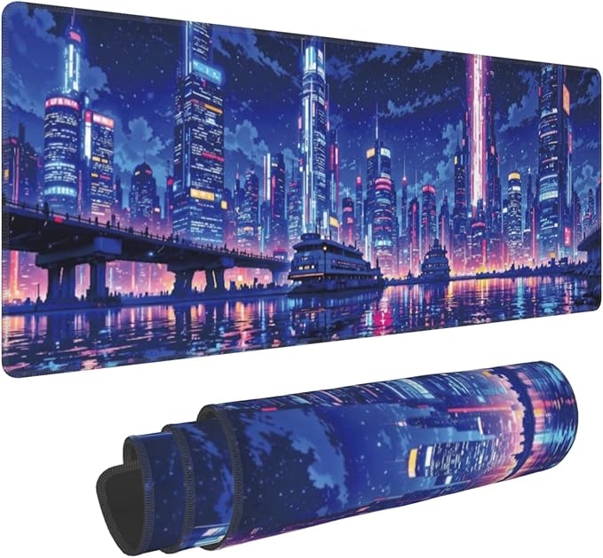 Neon City Large Mouse Pad, Anime Style Gaming Desk Mat, XL Keyboard Desk Pad Mat for Desktop, 31.5"x11.8" Non-Slip Base Big Mousepad with Stitched Edges