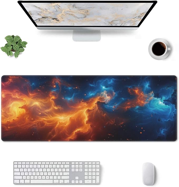 Cosmic Fire and Ice Nebula Large Mouse Pad, Gaming Desk Mat, XL Keyboard Desk Pad Mat for Desktop, 31.5"x11.8" Non-Slip Base Big Mousepad with Stitched Edges
