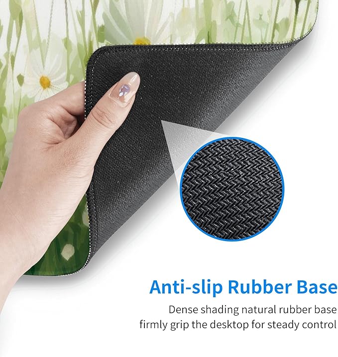 Daisy Flowers Large Mouse Pad, Floral Gaming Desk Mat, XL Keyboard Desk Pad Mat for Desktop, 31.5"x11.8" Non-Slip Base Big Mousepad with Stitched Edges