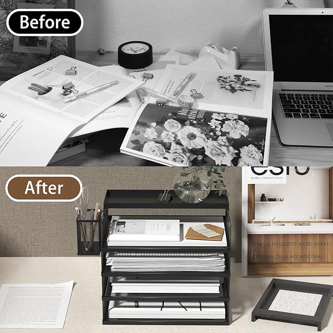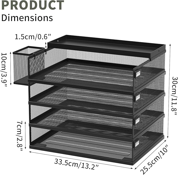 Metal Stackable Letter Trays, 4-Tier Desk Organizer & Paper Trays for Office, Stackable File & Document Tray with Magnetic Labels,Black