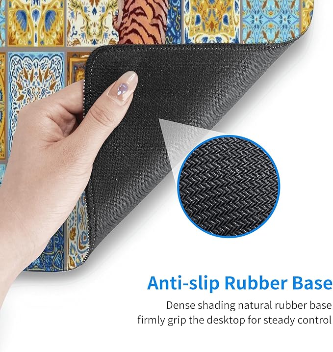 Mexican Tile Tiger Large Mouse Pad, Vintage Aesthetic Gaming Desk Mat, XL Keyboard Desk Pad Mat for Desktop, 31.5"x11.8" Non-Slip Base Big Mousepad with Stitched Edges