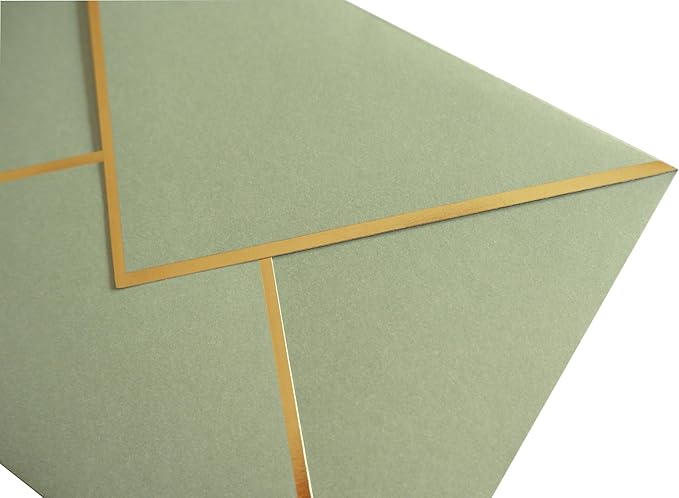 A7 Envelopes - V Flap Foil Border Luxury Mailing Envelopes for 5" x 7" Cards - for Wedding, Invitations, Baby Shower, Photos, Graduation, Birthday, Bridal Shower - 5.25" x 7.25" (Sage, 50 Pack)