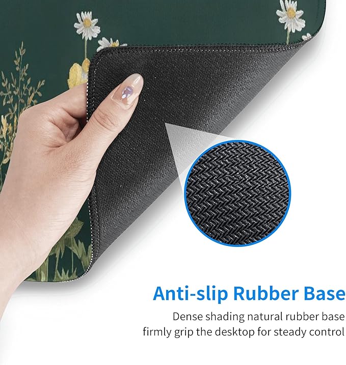 - Non-slip Rubber Base: The large desk pad mat is made of premium rubber base, and the dense non-slip rubber base can firmly grip the desktop, thus providing stable operation for the mouse and keyboard. It's flexible enough to be rolled up for easy transport, to move around