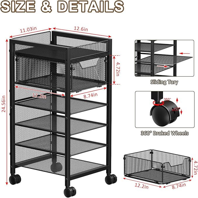 - 【24.56" Height Wheeled Cart – Fits Under Desks】This rolling file cart (24.56” tall with wheels) slips easily under most standard desks—maximizing workspace. It has a top storage basket. You can easily grab your essentials (sticky notes, notebooks) while sitting in your chair—no bending required