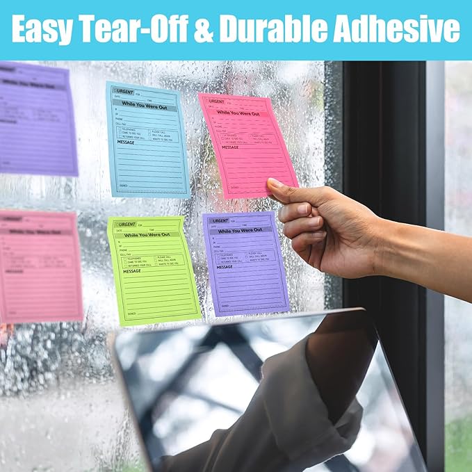 - 9-color 450-sheet bulk pack: Contains 9 books of different color message pads, 50 sheets in each book, totaling 450 sheets. The color distinction of the while you were out message pad is convenient for classification and recording, and the quantity is sufficient to meet daily replacement, without frequent replenishment