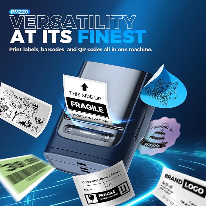 - Nelko Label Maker Machine with Tape, PM220 Bluetooth Label Printer, 2 Inch Portable Thermal Printer for Small Business, Address, Logo, Clothing, Sticker Maker for Phones & PC, Navy Blue