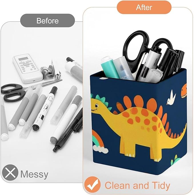 Pen Holder Square Leather Pencil, Holder Cup Makeup Brush Storage Organizer, Waterproof Multifunctional Office Supplies Dinosaur