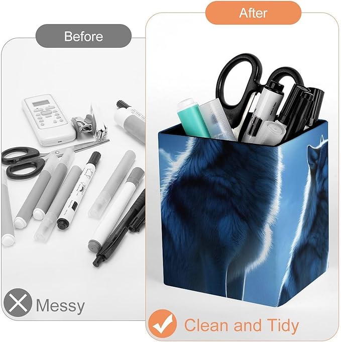 Pen Holder Stand For Desk, Pencil Pen Holder Cup, Desktop Stationery Organizer, Waterproof Multifunctional Office Supplies Wolves Howling Full Moon