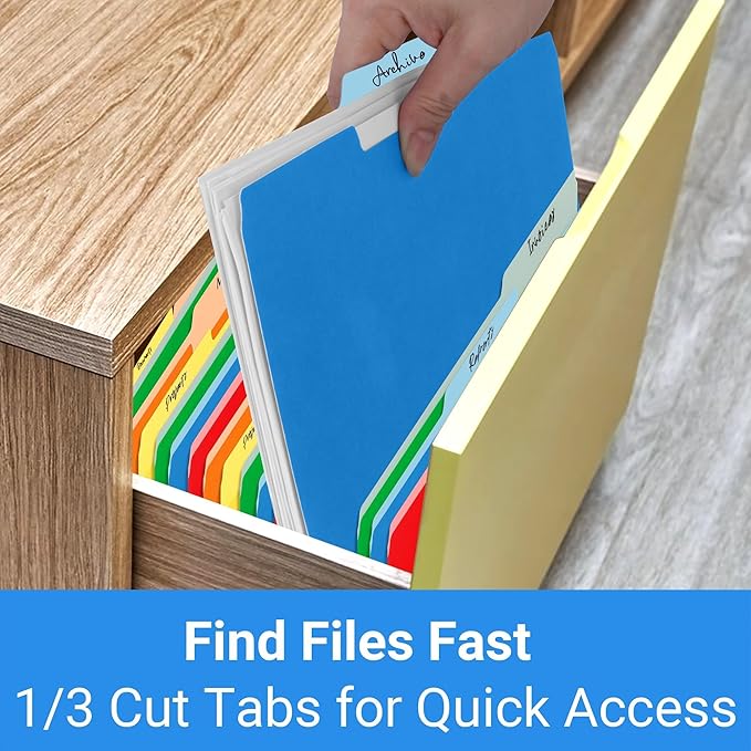 - Easy Labeling with 1/3-Cut Tabs – Features three tab positions (left, center, right) for clear labeling and quick file identification, perfect for sorting by category, priority, or date.