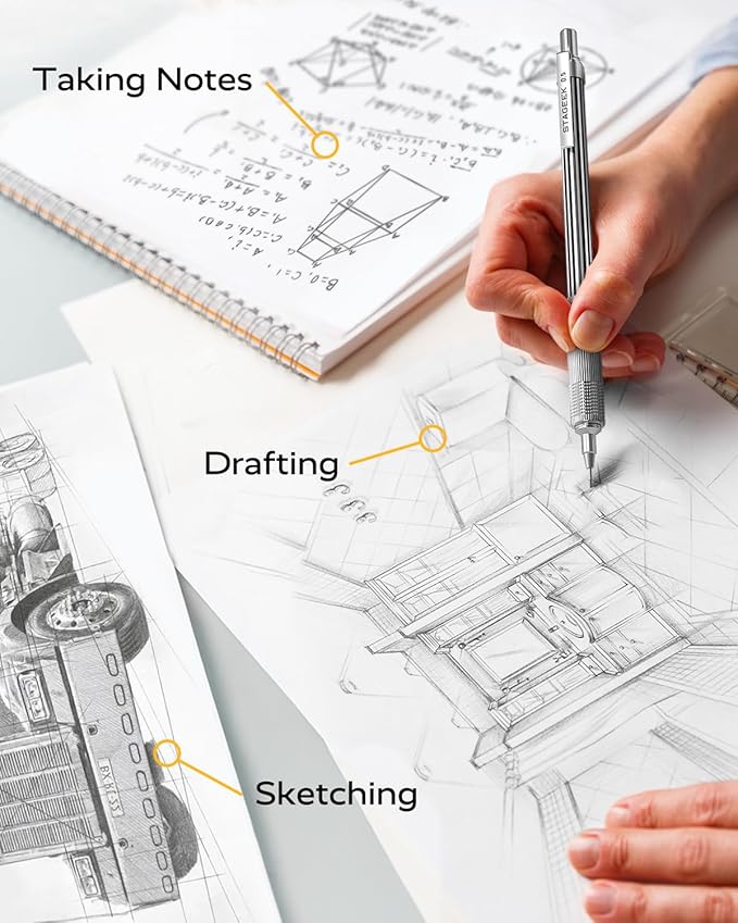 - [Superior Drafting Pencil] The 0.5in ultra long pencil tip design helps you achieve a wider perspective. Ideal for writing, sketching, and drawing, this mechanical pencil is incredibly break-resistant, offering long-lasting durability that keeps you focused on your task