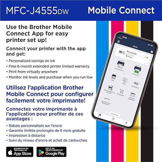 - THE BROTHER MOBILE CONNECT APP: Put the power of printing at your fingertips. Go mobile with the Brother Mobile Connect app(7) that delivers easy onscreen menu navigation for printing, copying, scanning, and device management from your mobile device.