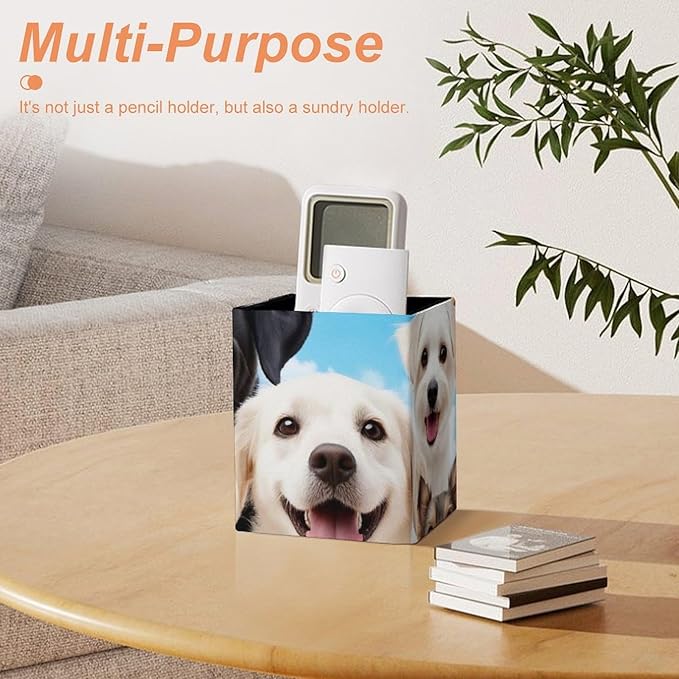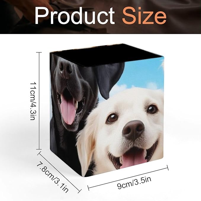 Pen Holder Square Leather Pencil, Holder Cup Makeup Brush Storage Organizer, Waterproof Multifunctional Office Supplies Cute Dogs