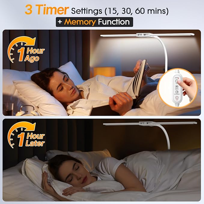 - Touch-Free Gesture Sensor Switch & Wired Control: Crafted with a distinctive touch-free motion sensor switch, you can effortlessly turn the desk light on/off by simply waving your hand. This office lamp also features wired control to adjust the color temperature and brightness of the lighting, activate the timer function by a short press, automatically turning off after 15/30/60 minutes.