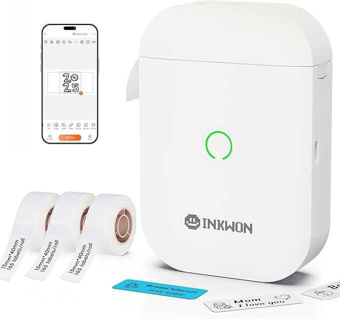 - Ideal for Homes & Office: InkWon label maker machine with tape perfect for organizing home items, office files, or classroom supplies—all with one compact device. Boost efficiency and aesthetics for a more streamlined life and workspace.(Note:This device only supports black printing. For colored labels, colored patterned label tapes must be used for printing.)