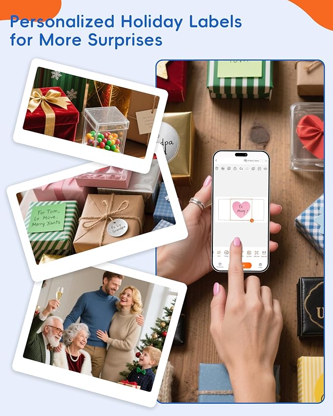 - Multi-Functional Idea Hub: A bluetooth label printer with a built-in app offering tons of creative templates: home & life, inspiration, holidays, beauty, work & study, and more. Customize freely in DIY mode: mix text, stickers, QR/barcodes, borders, and more. Bring your ideas to life with personalized labels