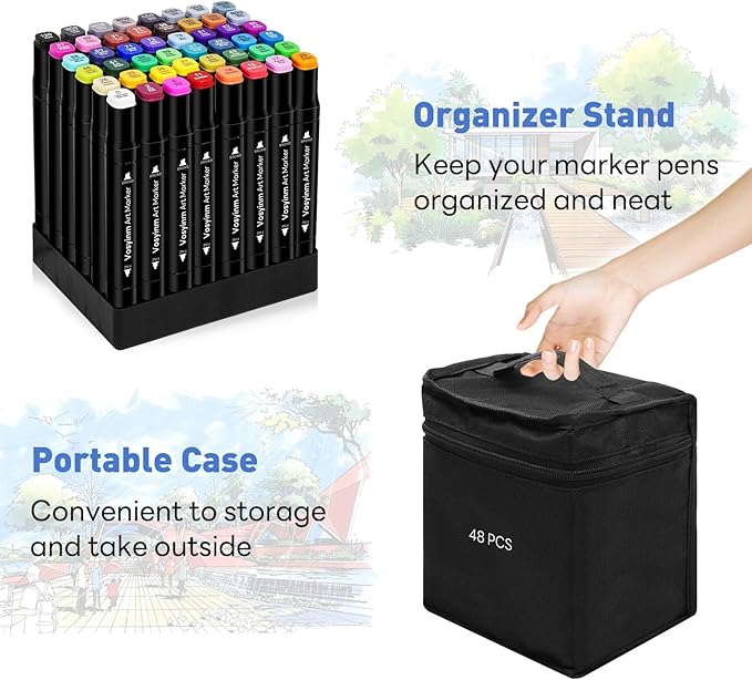 - Smart Organization & Portable: Color-coded caps and numbered labels enable instant color identification. Our drawing marker set includes a convenient base tray for neat storage and a stylish black carrying case. This ensures that your markers are always organized, and can be easily transported, making it convenient for you to take your creativity on the go