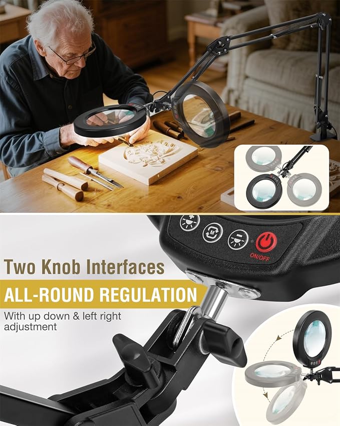 - Practical Upgrade for Work & Hobby: The sturdy metal clamp opens up to 2.56 inches and includes a double-layer non-slip pad to protect your furniture. It attaches securely to tables, work bench, or desks, keeping your magnifying lamp firmly in place. A magnifying tool for crafters, jewelers, estheticians, collectors, and hobbyists. It also makes a thoughtful gift for seniors, artists, and anyone who enjoys detailed work.