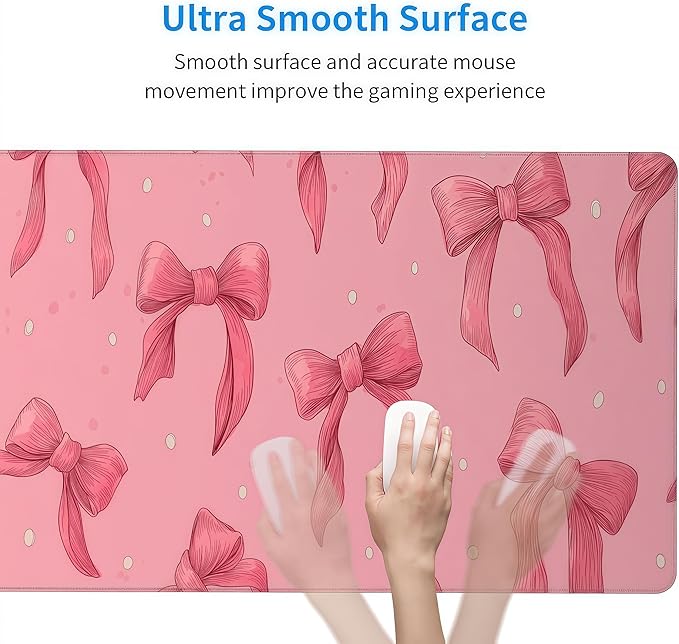 Large Pink Mouse Pad with Bows, Non-Slip Desk Mat for Laptop PC, Gaming Mousepad, 35.4 x 15.8 inches
