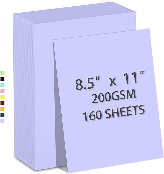 160 Sheets Cardstock Paper 8.5 x 11 Heavyweight Weight 200gsm Purple Card Stock Paper Printing, Crafts, Invitations | Smooth Printer Cardstock Paper | Bulk Construction Paper DIY & Professional Use