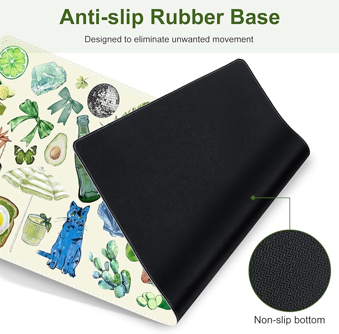 Mouse Pad, 4 in1 Large Desk Mat, Desk Pad Matt for Desktop, Anti-Slip XXL Big Computer Ergonomic Mousepad with Wrist Support for Keyboard and Mouse for Women I Green Theme Stickers