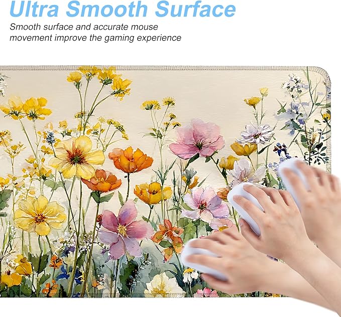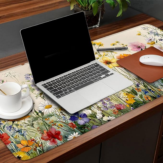 31.5" x 11.8" Watercolor Floral Mouse Pad – Vibrant Wildflower Garden Desk Mat with Daisy, Poppy & More – Extended Non-Slip Mouse Pad for Home Office Decor