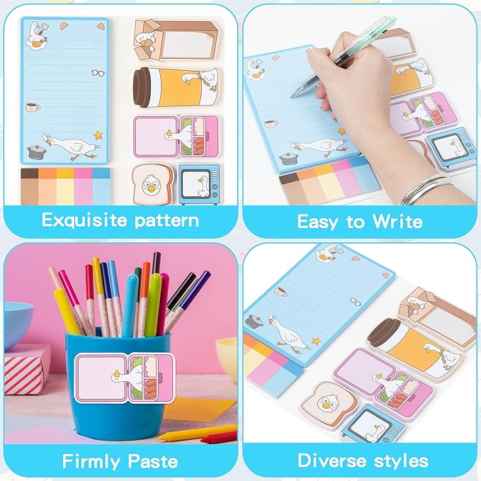 - Unique Design: The sticky note book is simple and stylish with funny silly goose theme and five different shapes of funny silly goose on the sticky notes.It can express gratitude to teachers and add beauty to books, desks, and rooms