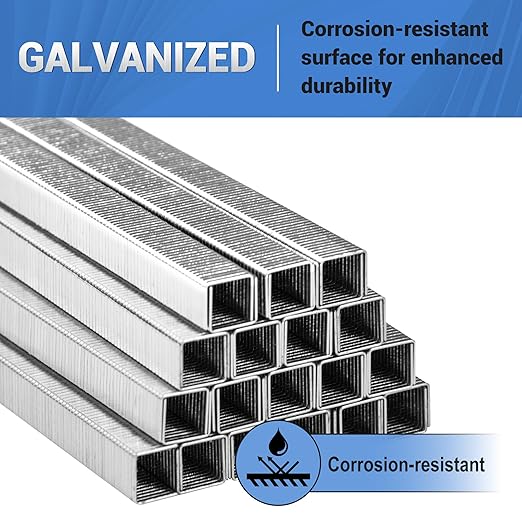 - [Galvanized Upholstery Staples] Bright galvanised surface with resistance to rust and corrosion, making them ideal for use in a wide range of environments. You can rely on their performance.