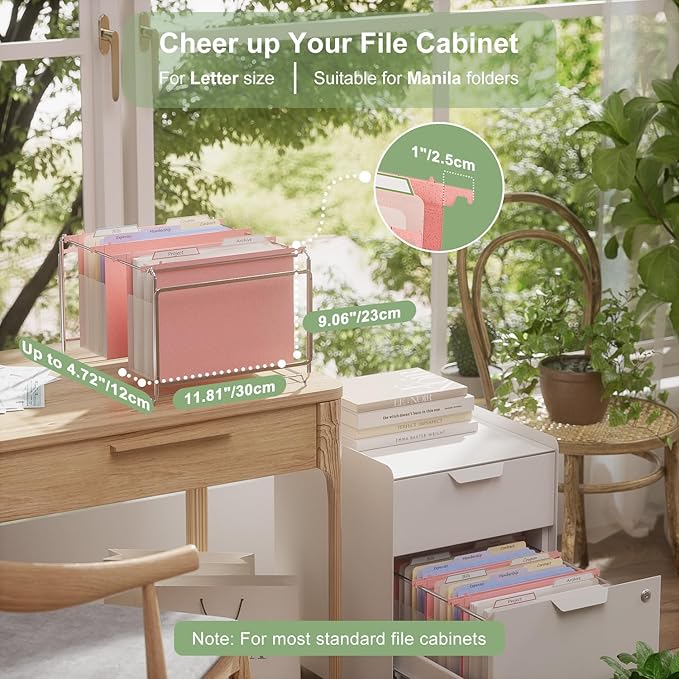 - EXPANDABLE POCKET, LARGE CAPACITY:This wheat straw expanding hanging file folder features a single pocket with a bottom that expands up to 4.72"(12cm). Designed for Letter-size files and most standard file cabinets (L: 11.81"/30cm, H: 9.06"/23cm, fits MANILA folders). The extended 1"/2.5 cm hooks adapt to more file cabinets. The expandable design grows with your files, preventing wear and tear.