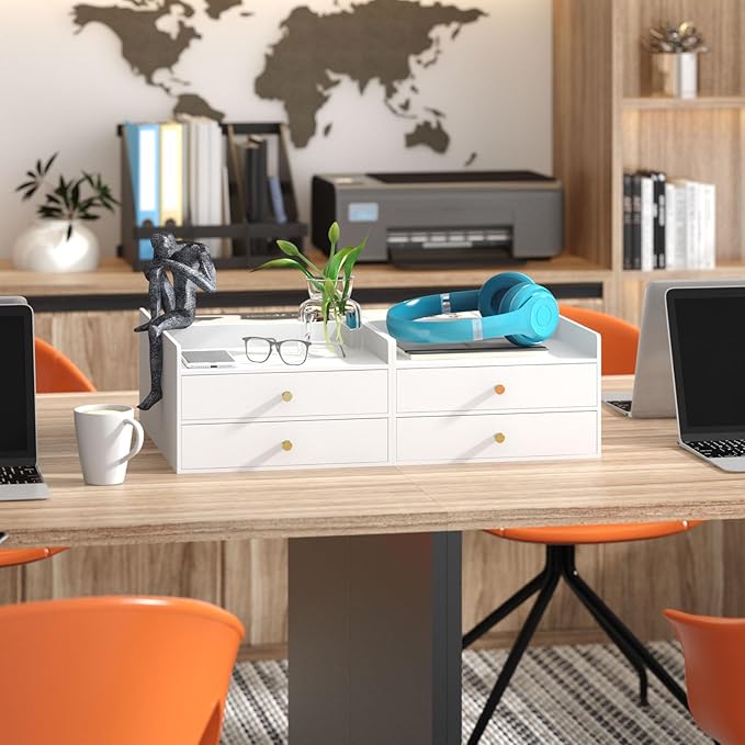 - Ample Storage Capacity: With multiple size drawers, the desktop storage efficiently organizes office supplies, cosmetics, accessories, and daily essentials. Dimensions: 12.2" x 8.58" x 7.09" – compact yet versatile for various spaces.